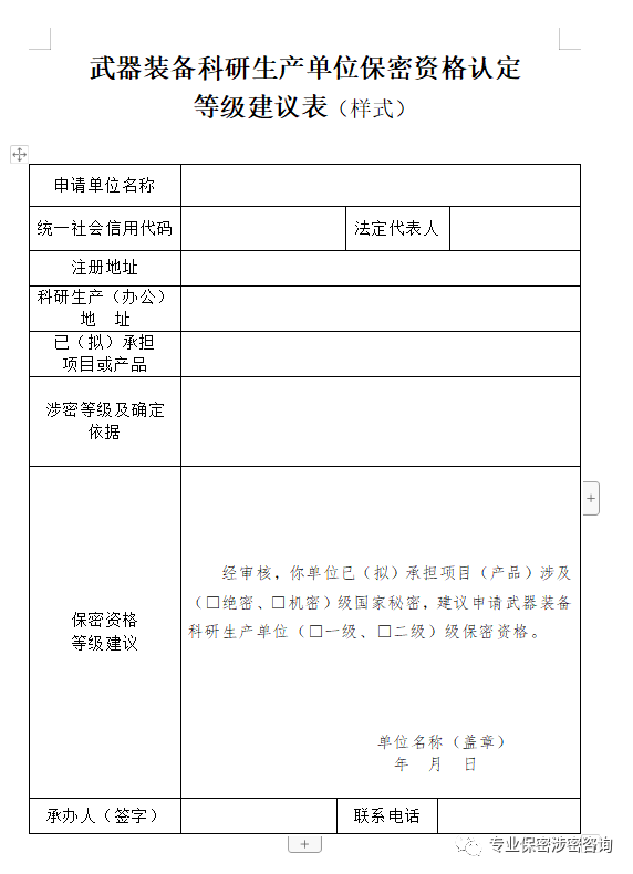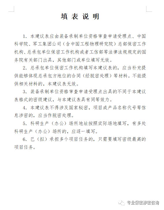 5、《武器装备科研生产单位保密资格认定等级建议表》不得涉及guojia秘密信息。