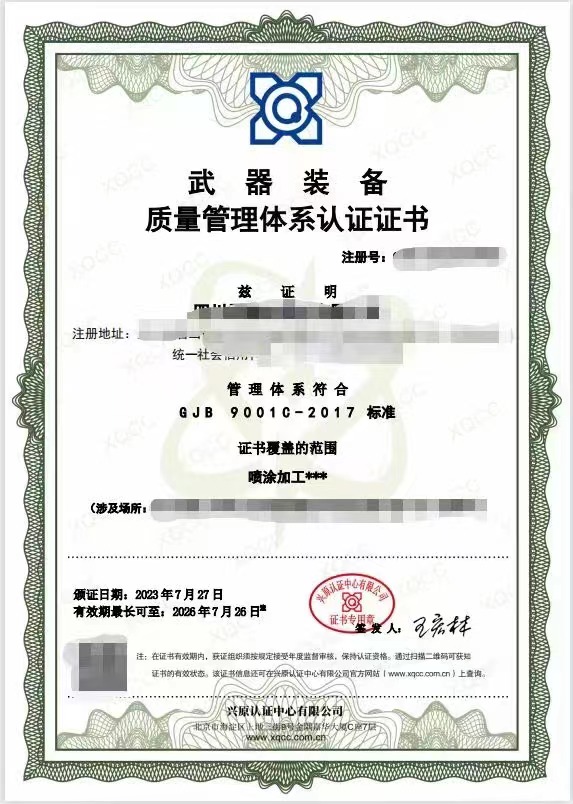 国军标质量管理体系认证:也称为国军标认证,是通过认证的单位体现其全员、全过程、系统化、规范化的科研生产管控能力,能够从事武器装备的论证、研制、生产、测试和维修。